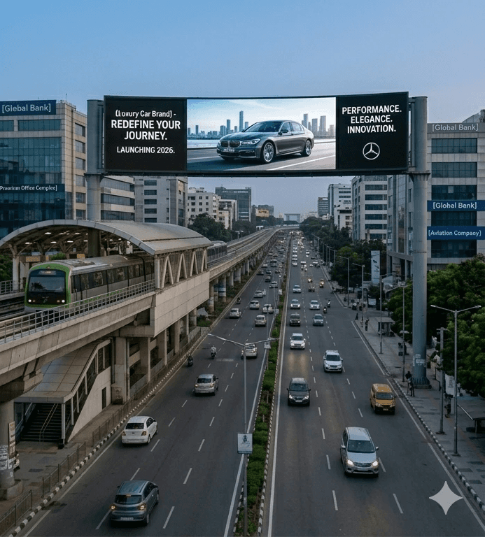 Digital billboards elevate outdoor advertising with dynamic, high-visibility displays that capture attention at scale across major roads and highways. At Brandcaster, we utilize strategically placed billboards to showcase your brand with impactful visuals, ensuring maximum exposure, continuous visibility, and strong brand recall among a wide audience.